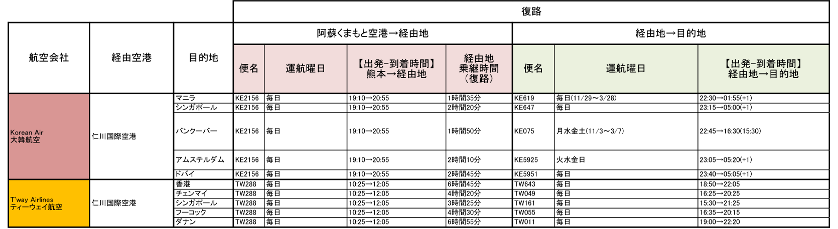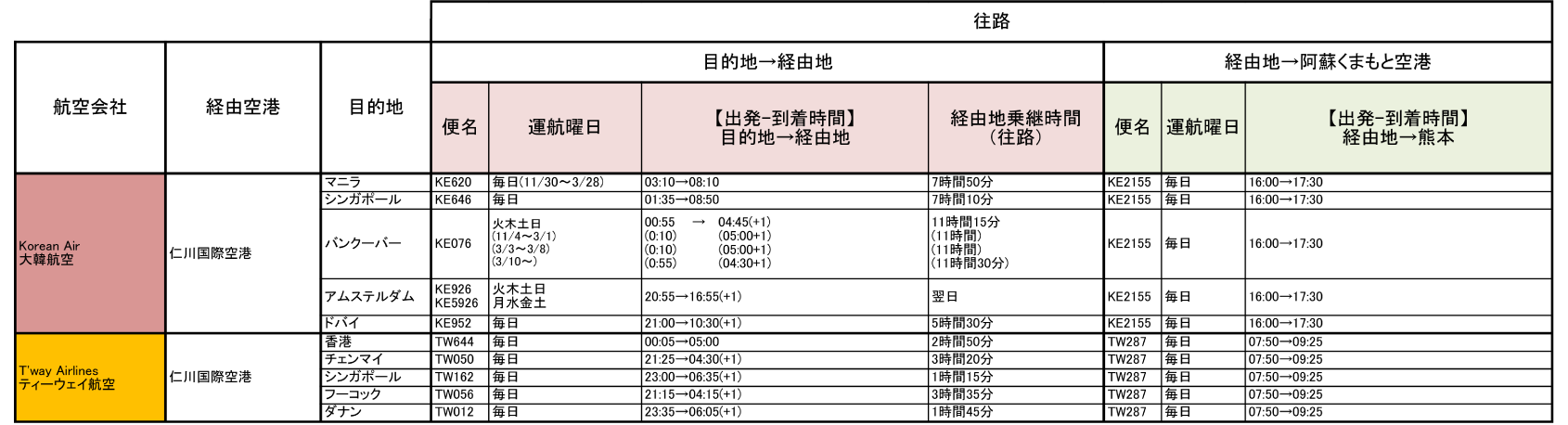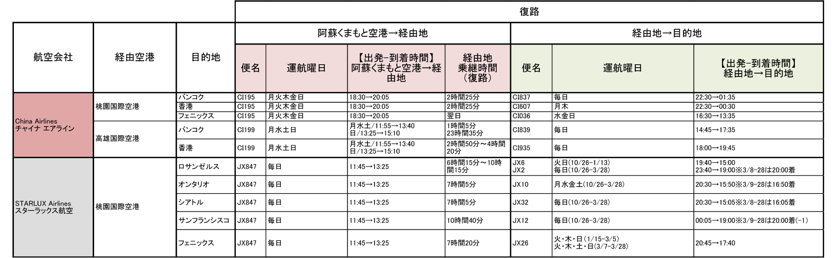 ※運航日や運航時刻が変更となる場合がございますので、詳細については、各航空会社のホームページにてご確認ください。