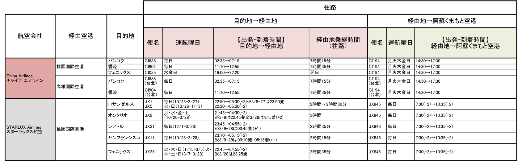 ※運航日や運航時刻が変更となる場合がございますので、詳細については、各航空会社のホームページにてご確認ください。